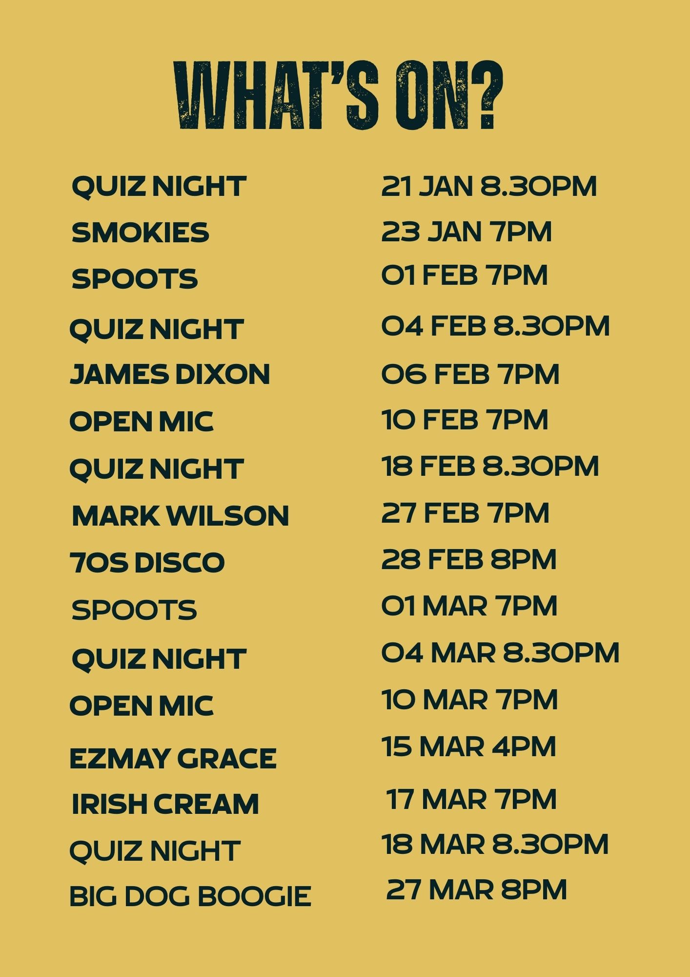 Make the most of our weekly deals this WinterPensioner's lunch club- Monday-Thursday 12pm-3pmWorker's Pot- Mondays 5pm-8pmPie & a pint- Thursdays 5pm-8pm